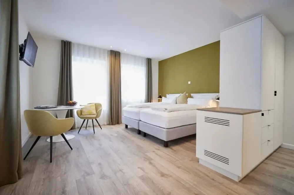 Weitere Informationen zu ZEITraum1 GummersbachDas Garni Hotel Bodden in Gummersbach ist eine ideale Wahl für Reisende, die nach komfortablen Unterkünften suchen. Die Zimmer sind ausschließlich für Erwachsene geeignet und verfügen über private Badezimmer mit Dusche, Haartrockner sowie grundlegende Ausstattungsmerkmale wie Fernseher, Kleiderschränke und einen Arbeitsschalter.
