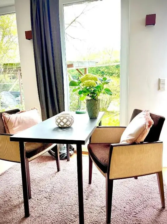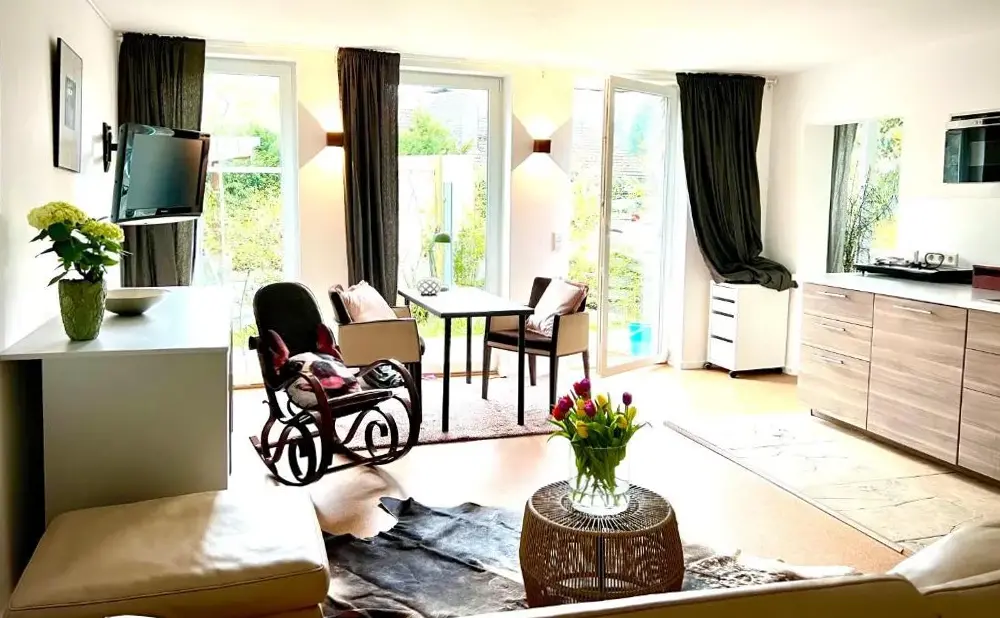 Weitere Informationen zu Hotel M Jacobs GmbHDie Ferienwohnung am Obstgarten in Gummersbach bietet geräumige Unterkünfte mit zwei Schlafzimmern und einem Wohnzimmer. Die Wohnung verfügt über eine voll ausgestattete Küche sowie Waschmaschine und kostenloses WLAN. Außenanlagen umfassen einen Garten und eine Terrasse mit Kamin und Sitzbereich, ideal für Entspannung im Freien. Zusätzlich gibt es eine Küchenzeile, Essbereich und Arbeitsplatz.
