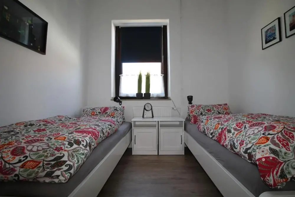 More information about Lieblingsmensch Oberhausen mit TerrasseCore Rooms - Apartment Oberhausen provides comfortable accommodations in Oberhausen featuring a spacious apartment with three bedrooms and one bathroom. The unit includes a fully equipped kitchenette, washing machine, and dining area. Modern amenities such as a flat-screen TV, free WiFi, and a dishwasher enhance guest comfort.
