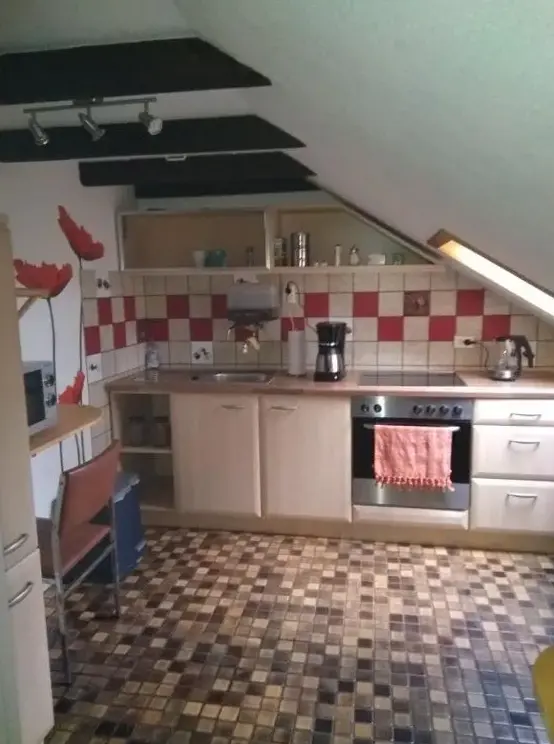 FeWo Oberhausen-Alstaden (Gornig) provides comfortable accommodations featuring a two-bedroom apartment with a living room. The unit includes a kitchenette, bathrobes, and a work desk. Modern amenities such as free WiFi, a fully equipped kitchen, and a walk-in shower enhance guest comfort. Additional facilities like a coffee machine, microwave, and television ensure convenience.