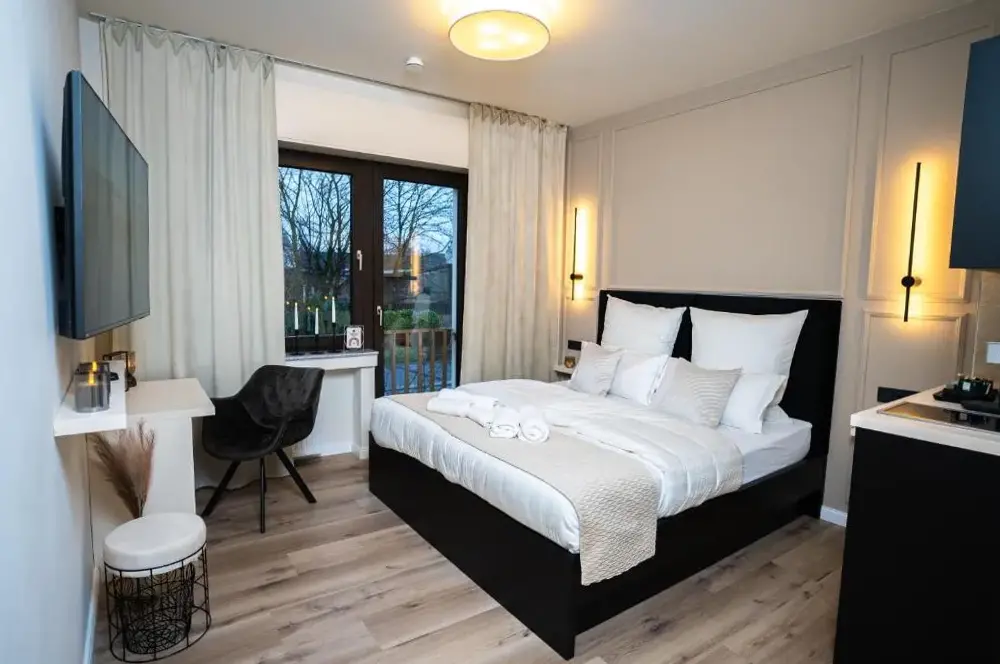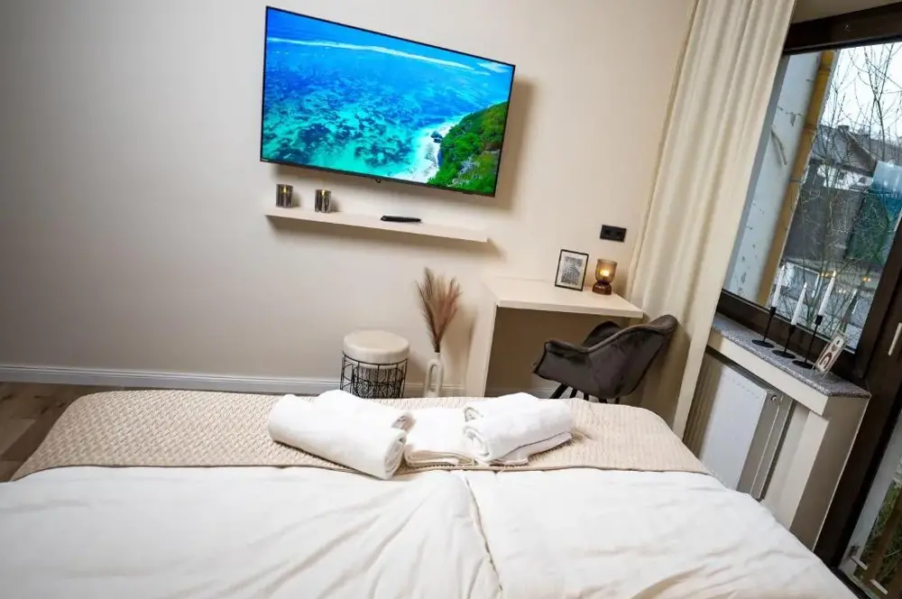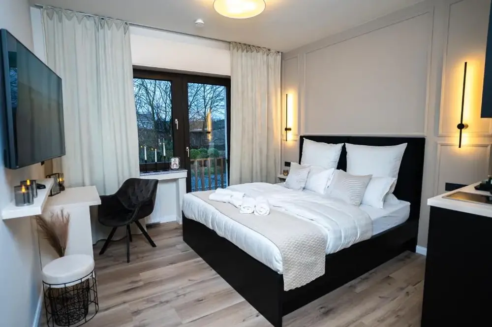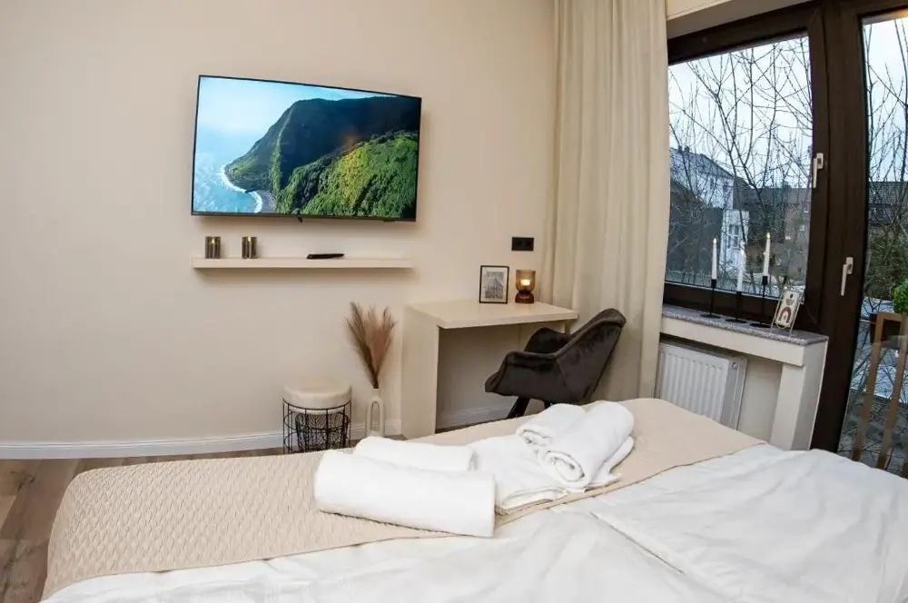 More information about T&K Apartments Oberhausen 2 room ApartmentsThe Boutique Apartment 2 Oberhausen at 4 Bismarckstraße, 46047 Oberhausen, offers a stylishly furnished stay with modern design and meticulous cleanliness noted by guests. Reviewers highlight its comfortable layout, which aligns closely with the listed photos, providing a welcoming atmosphere throughout their visit.