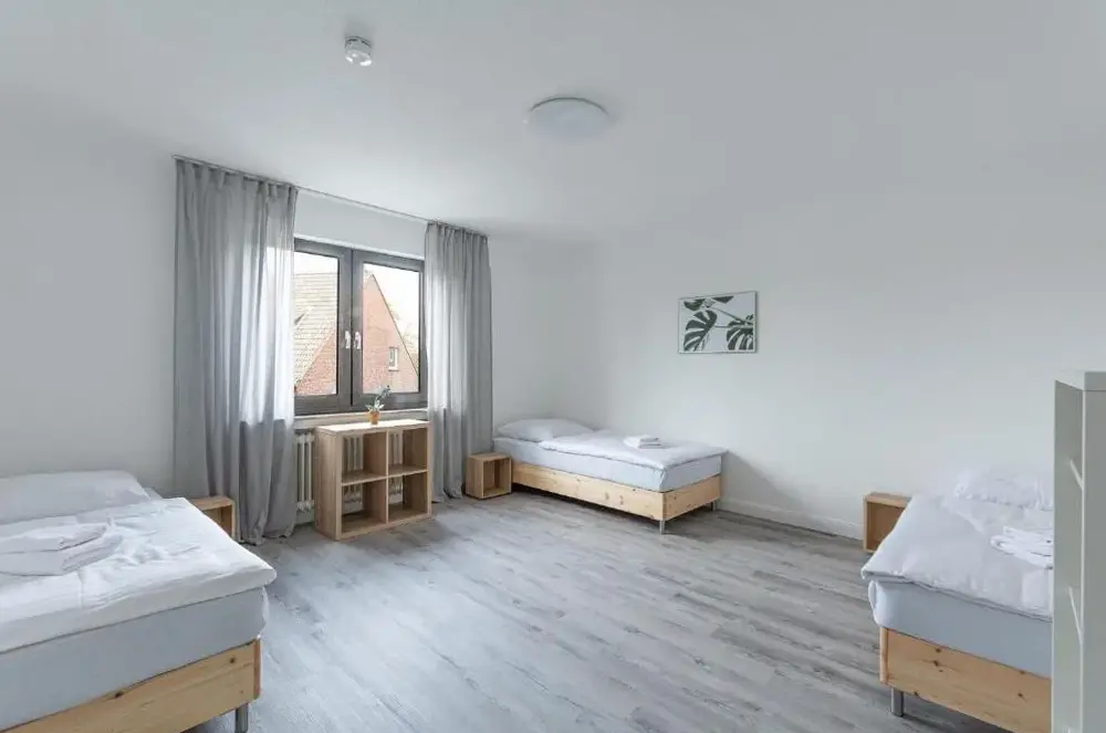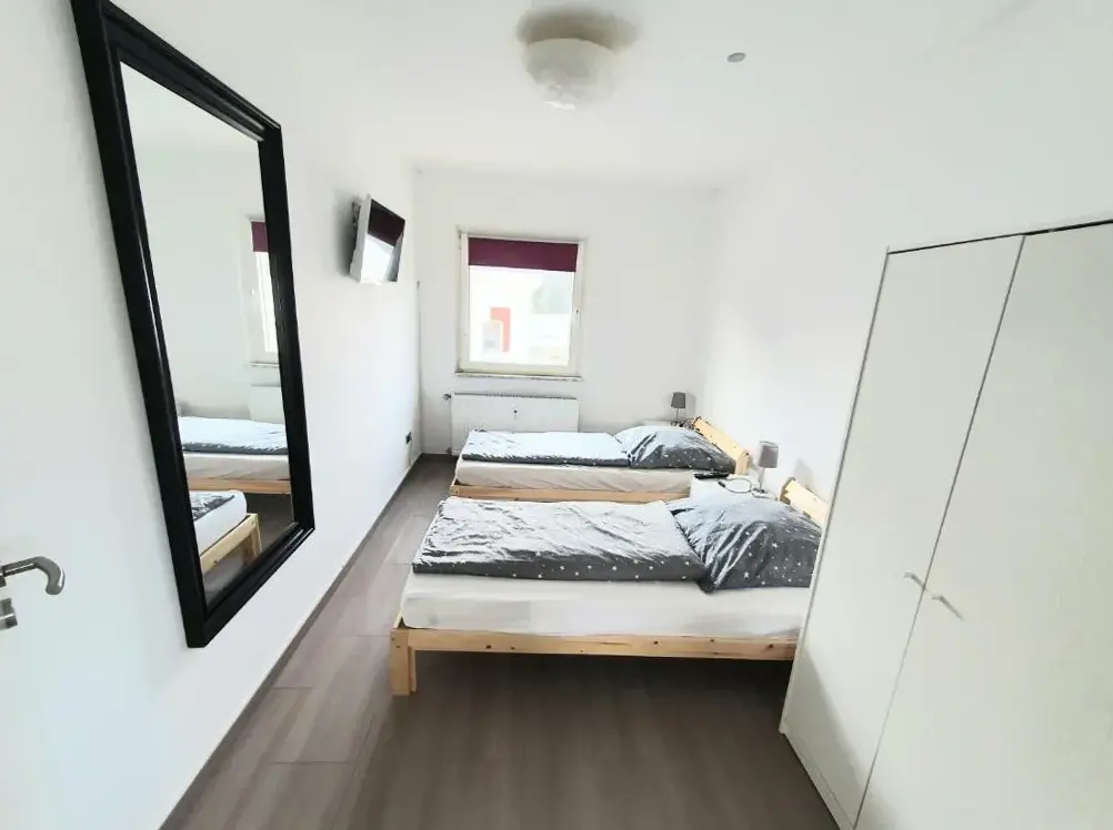 More information about Las Vegas by D&J Apartment‘sPottmensch Oberhausen 3 Schlafzimmer is a spacious apartment located in Oberhausen, offering three bedrooms and a living room designed for comfort. The property includes family rooms and parquet flooring, enhancing its appeal for families or groups. Modern amenities such as free WiFi, a fully equipped kitchenette, washing machine, and bathroom ensure convenience during your stay.